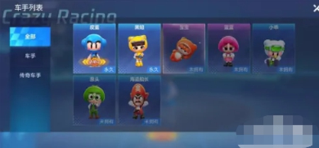 2.进入仓库之后,默认看到的是我们的赛车,其中左侧有一个车手选项,我们点击一下。