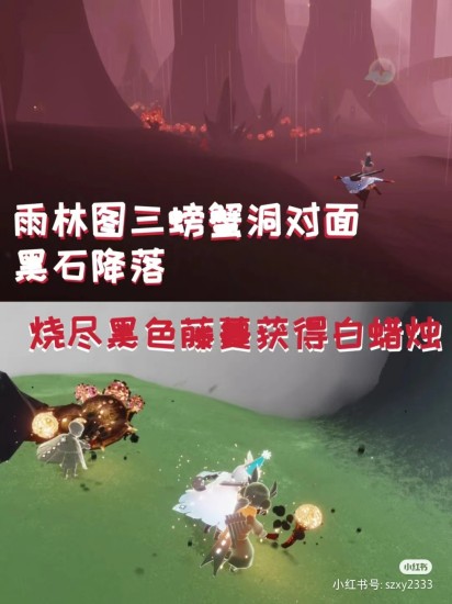 今天和昨天是一样的,没有获得红蜡烛的任务,只有获得烛火的黑石任务,位置地点在雨林的三图螃蟹洞的对面。