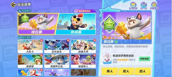 2、选好模式之后根据好友数量选择右下角“双人”“四人”。