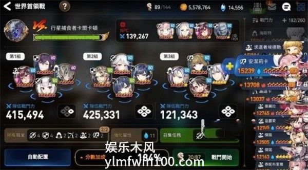 由于是世界型boss,不谈其他方面,光靠基础血量以及伤害而言,就已经是比常规关卡要难上不少。当然,这是只针对前期而言。不过也因此活动官方给予我们一些福利,我们一次性讨伐可以上四支队伍。除了基础的三只作为自己的主力以外,还要额外增加一支NPC助战队伍,凑够四个满编队进行讨伐。