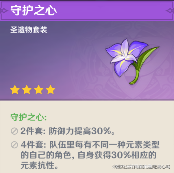 萌新可选,2+2守护之心+赌徒除了不是金色的,两件套效果都和金色圣遗物一样,还是很不错的萌新过渡选择。