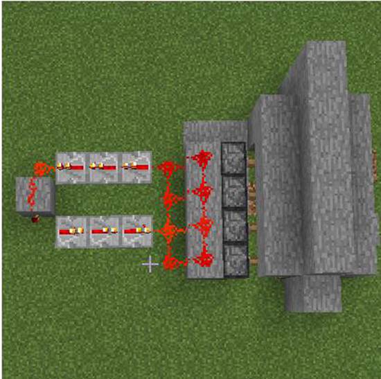 8、这样就形成了一个简易的电路了,通过循环激活活塞,达到推出石头的目的;