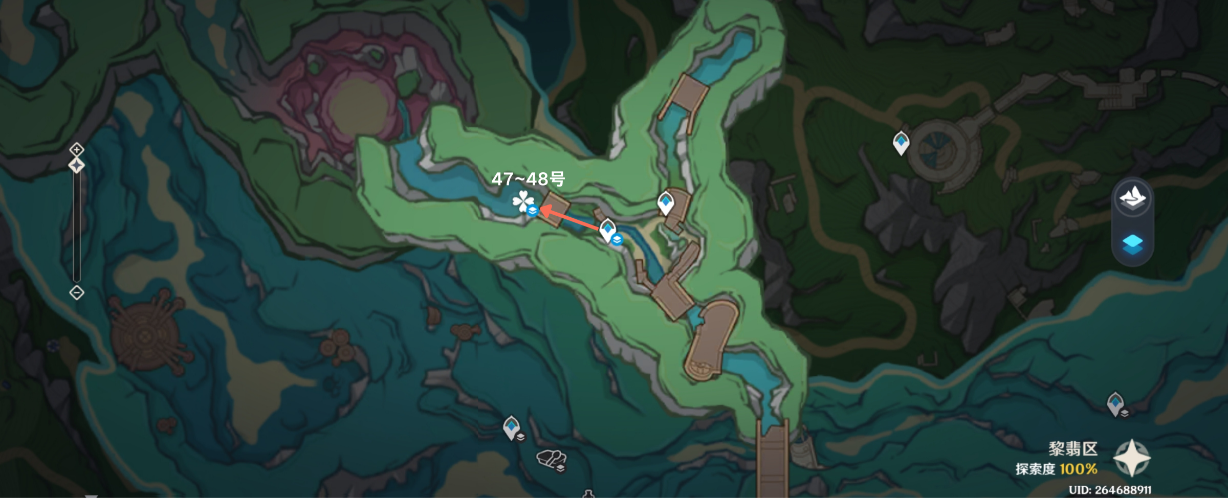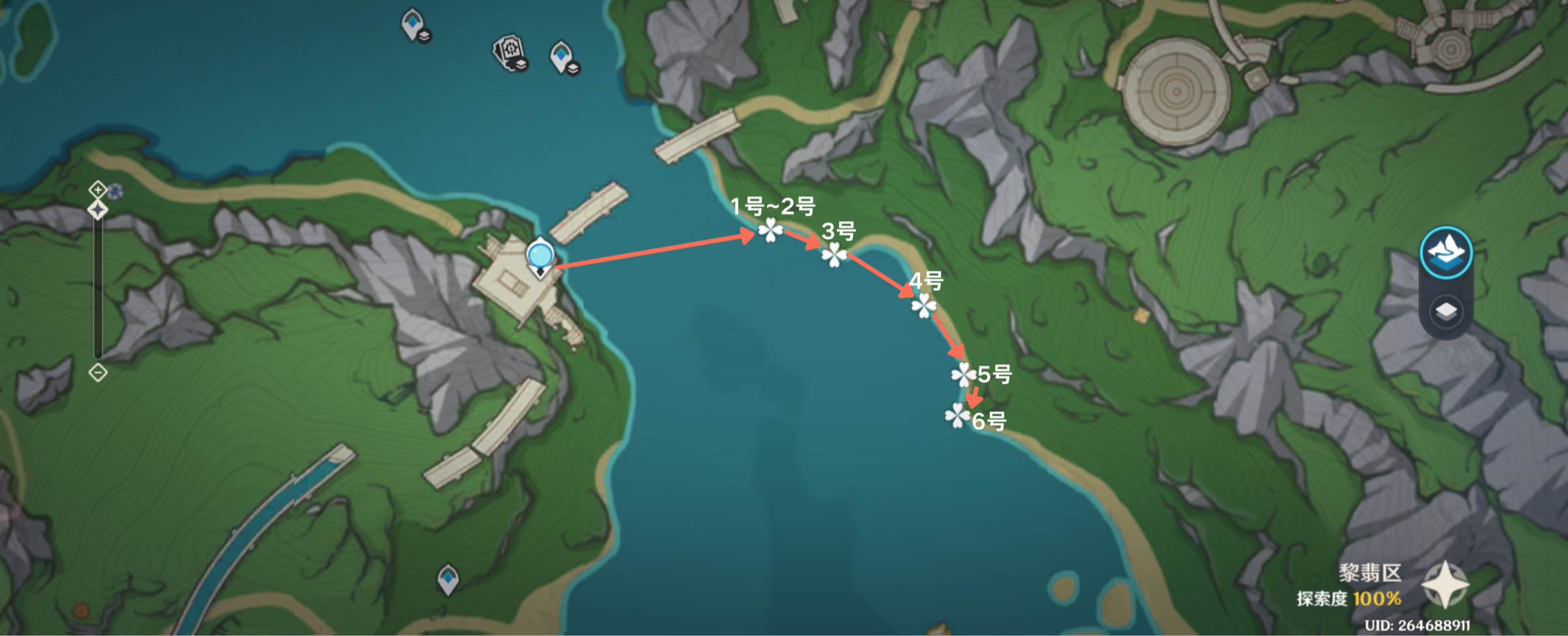 1、翡翠区的七天神像下来后往东边对岸的限时挑战处滑翔过去