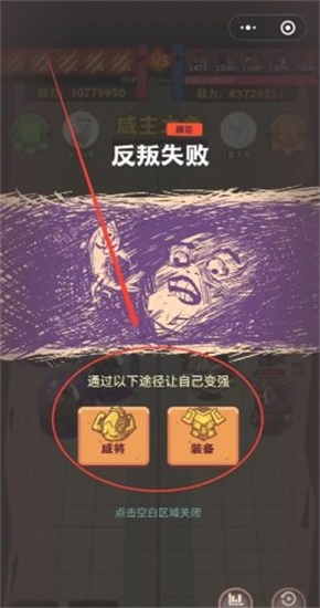 当我们战力比咸主低肯定不能够反叛成功,我们只需要根据反叛结果下方的提升,进行战力的提升,只要我们的战力比所有人高,那么就可以避免被别人抓咸臣了