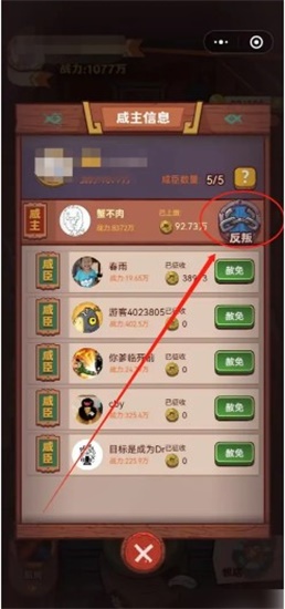 这样我们就可以看到,我们的咸主信息,然后我们点击咸主右侧的反叛图标,进行反叛,如图所示