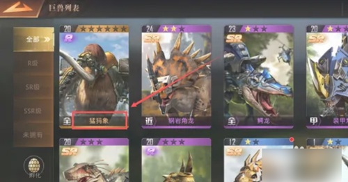 2.打开页面后,点击一个你想要进行技能觉醒的巨兽。