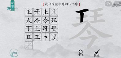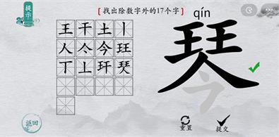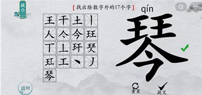 离谱的汉字琴找字过关攻略离谱的汉字是一个非常热门的汉字解谜闯关游戏,这个游戏中的大部分的关卡内容都是围绕着各种各样的汉字来设计的,玩法内容都是非常的有趣,每一关卡都有自己独属的特点和任务要求,是一个既能让人在玩的过程中思考打开思路的游戏,又能让人体验到放松心情的游戏。游戏中有一个关卡琴找字这一关,玩家们需要在这一关中找到17个字,还是有点复杂的,有些玩家就被难住了,下面小编就给大家带来了离谱的汉字琴找字过关攻略,感兴趣的玩家们可以参考下面看看,会有帮助的。