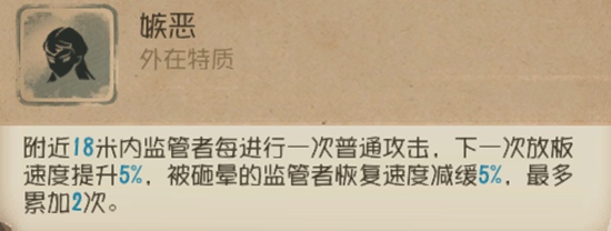 古董商在队伍中救援位缺乏时可以携带化险为夷充当救援位置,自身的击晕和封普攻特性可以在救援环节与监管者的博弈中占据主动权;膝跳反射又可以一定程度增加古董商的牵制能力避免开局被针对。