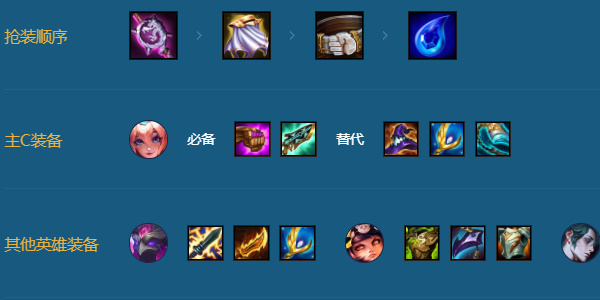 主C莉莉娅:常规输出装法爆、帽子、大天使、巨杀、破防都可以,也可以带蓝霸服或纳什增加技能频率。