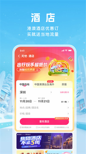 无忧行app官方下载是一款非常优秀的旅行生活服务应用。无忧行app官方下载用户可以轻松订购前往全球各地的火车票机票,当然,前提是路线有该地区的站点,起码飞往全球的各地的机票还是可以满足的!软件的操作很简单,而且还有提供针对国外的流量包出售,包含国内部分特殊地区,反正其存在的作用就是让大家走到哪都能流畅的使用手机访问国内应用!而除了通信之外,衣食住行软件也是统统涵盖,不要对衣有误解哦,这也是支持大家进行线上购物的,这只是小分支?对境外流量有需求的小伙伴千万不要错过!