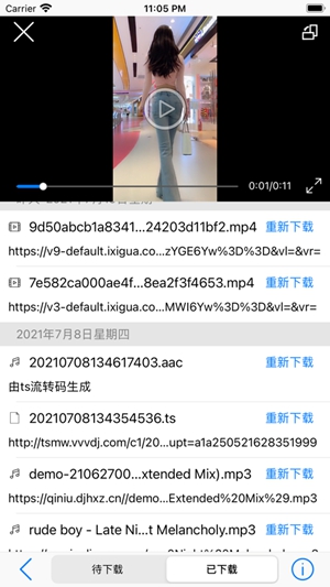3、浏览视频时我们新加了个小控件,可以获取当前页内视频(可以关闭)。