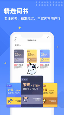 【海量词库】 四六级,专四,专八,考研,托业,托福,雅思,高考英语,BEC, GMAT,SAT,TED,自考英语,新闻英语,商务英语... 应有尽有。
