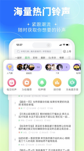 3、热门铃声,时下热门铃声资源,每日更新1000+,单曲循环100遍不嫌多。