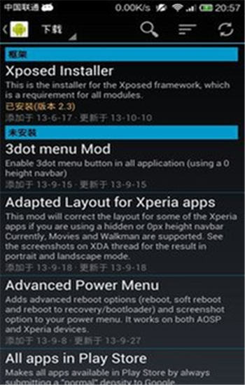 2. 整个软件只是框架,我们通过搭配不同的模块来进行功能的组合,每一个模块通过自行下载的方式进行定制,让我们的手机外观使用性的更强,而且整个手机拥有ROOT的权限能够畅玩各种游戏;