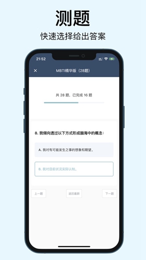 简洁易用:MBTI官网免费版的界面简洁明了,操作简单,用户可以轻松进行性格测试和查看结果。