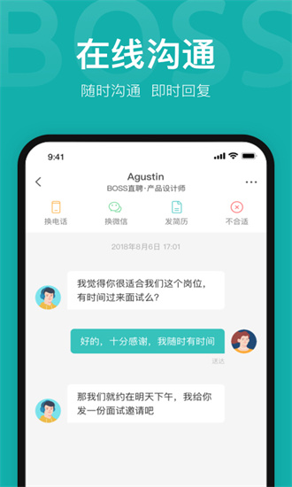 【跳槽更简单】像微信一样的app,随时随地约聊BOSS。